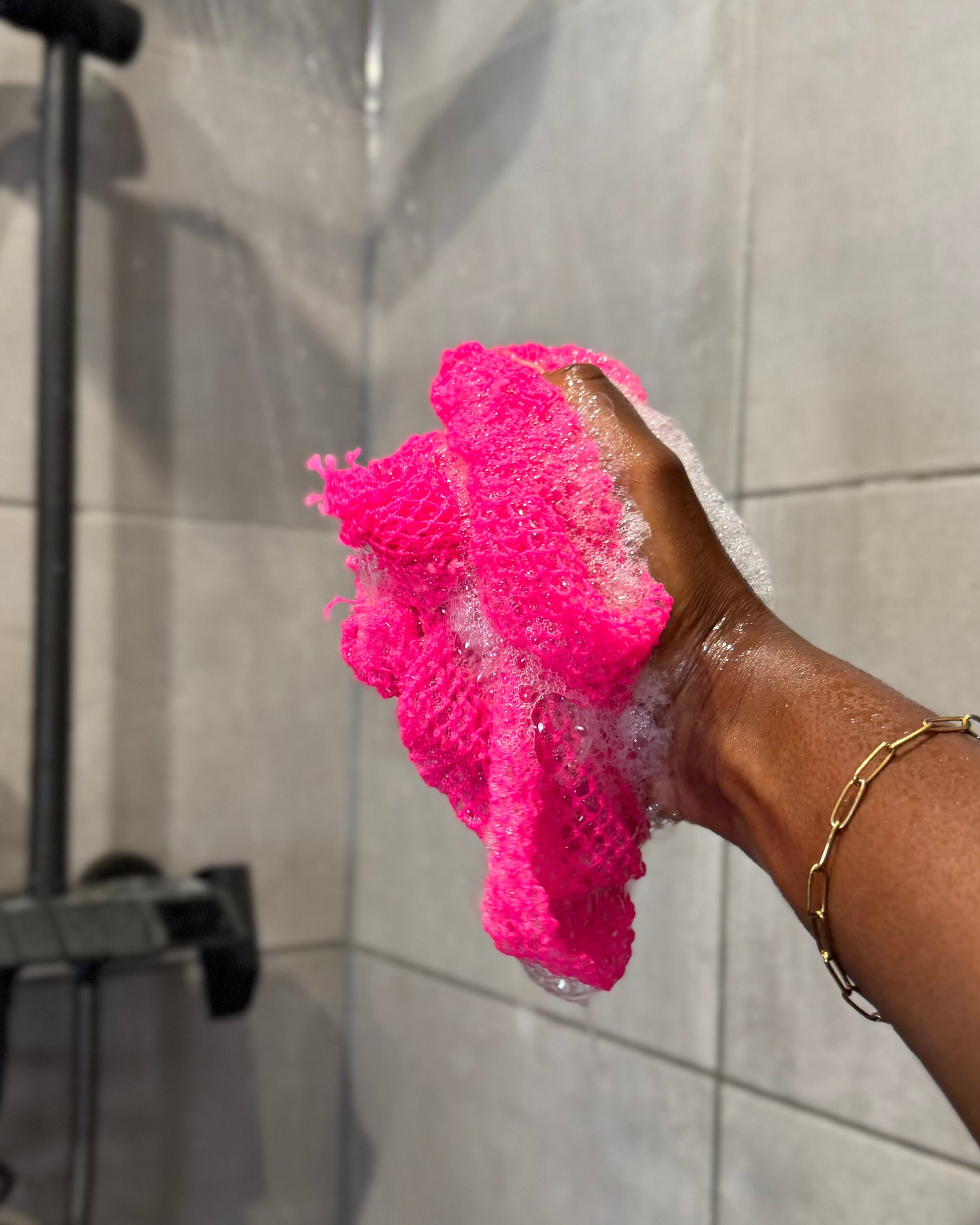 Originating in West Africa, this net sponge is a skincare essential that deeply cleanses, exfoliates, smooths, and revitalizes the skin.